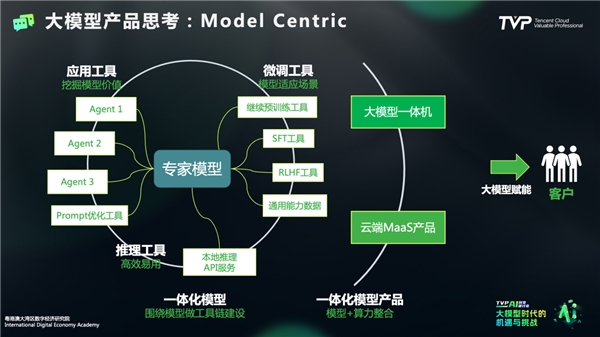 第二层封装是模型和算力整合封装:张家兴老师在这一方面正在和腾讯云展开合作,积极推进将模型和算力结合在一个大模型产品中提供给客户,做到“开箱即用”。