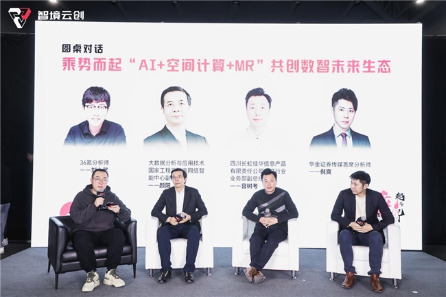 发布会最后,36氪资深分析师刘士武与中关村大数据产业联盟副秘书长颜阳教授、长虹佳华教育行业业务部副总经理宫树考、华金证券传媒首席分析师倪爽,围绕「乘势而起,“AI×MR×空间计算”,共创数智未来生态」主题展开了精彩纷呈的圆桌讨论。